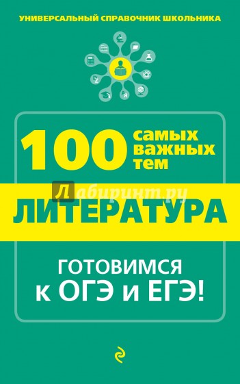 Справочник содержит 100 самых важных тем по литературе. Все материалы приведены в соответствии со школьной программой и представлены в краткой и наглядной форме, позволяющей быстро найти необходимую информацию. Справочник поможет систематизировать знания, приобретенные в процессе изучения литературы, сосредоточить свое внимание на основных понятиях, терминах, определениях, подготовиться к урокам и контрольным работам, а также к ОГЭ и ЕГЭ.