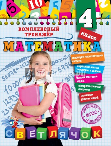 Пособие подготовлено в соответствии с требованиями ФГОС для начальной школы и может быть использовано с любым из действующих учебников по математике для 4-го класса. Занимаясь по книге, учащиеся продолжат тренироваться в решении примеров в пределах 1000, а также усвоят разрядный состав многозначных чисел и арифметические действия с ними (сложение и вычитание, умножение и деление на двузначное и трехзначное числа), займутся решением новых типов задач, будут выполнять упражнения с единицами измерения (длины, площади, массы, времени) и геометрическими фигурами (диагонали и углы многоугольников). После каждого раздела дана проверочная работа, позволяющая понять, насколько прочно усвоена тема (учащийся или взрослый закрашивает звездочку определенным цветом: зеленым - я справился со всеми заданиями, желтый - я думаю, что справился хорошо, красный - мне было трудно отвечать на вопросы) и вовремя устранить имеющиеся пробелы в знаниях. Адресовано учащимся, родителям и педагогам для закрепления и контроля знаний.