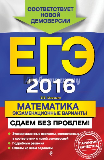 Пособие содержит тренировочные варианты работ для экзамена профильного уровня, составленные в соответствии с демонстрационным вариантом и спецификацией 2016 года. В конце пособия приводится подробное решение первого варианта, а также ответы ко всем заданиям. Кроме того, приводятся общие решения для наиболее сложных задач.