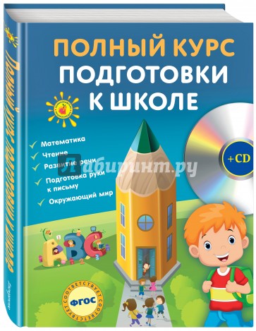Полный курс подготовки к школе с CD диском охватывает основные разделы дошкольного образования: математика, чтение, развитие речи, подготовка руки к письму, окружающий мир. Занимаясь по книге, малыш быстро и без труда научится читать, писать и считать, решать примеры и задачи, узнает много нового об окружающем мире. Задания, составленные опытными педагогами, помогут родителям оценить уровень подготовки ребенка к школе, а также вовремя ликвидировать пробелы в знаниях. На СД-диске - обучающие игры, которые дадут возможность детям учиться играя.