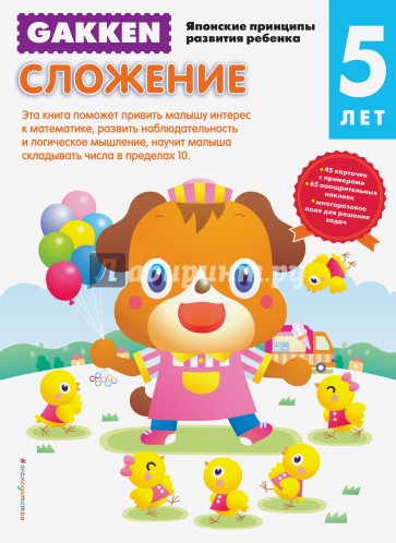 Книга "5+ Сложение" привить малышу интерес к математике, развить наблюдательность и логическое мышление, научит малыша складывать числа в пределах 10. Занимаясь по рабочим тетрадям "GAKKEN Японские принципы развития ребенка" вы через некоторое время сами убедитесь в том, что без нервотрепки и утомительных скучных занятий ваш ребенок может: