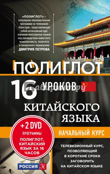Начальный курс китайского языка разработан по материалам популярной образовательной программы "Полиглот", выходившей на телеканале "Культура". В печатной версии курса даны упражнения, основные правила произношения и сведения о глаголах. С помощью шестнадцати уроков по методике Дмитрия Петрова вы сможете освоить базовые алгоритмы языка, применить их на практике и довести до автоматизма. В помощь тем, кто занимается самостоятельно, предлагается полный сборник ключей, т.е. выполненных упражнений. Теперь читатели смогут проверить, правильно ли они усвоили грамматические правила, и внести необходимые коррективы в процесс изучения языка. Книга содержит 2 DVD программы "Полиглот. Китайский язык за 16 часов", которые помогут закрепить пройденный материал и начать уверенно общаться на китайском языке. Начните говорить на китайском прямо сейчас!