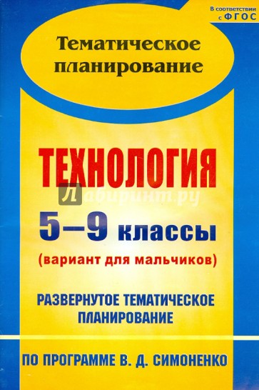В пособии представлено развернутое тематическое планирование по технологии в 5-9 классах (вариант для мальчиков), составленное на основе Примерной программы общего образования в соответствии с авторской программой и учебниками по технологии под редакцией В. Д. Симоненко, предполагающее реализацию компетентностного, личностно ориентированного, деятельностного подходов к содержанию образования.