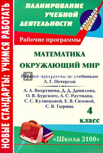 В пособии представлены рабочие программы по математике, окружающему миру для 4 класса, разработанные в соответствии с основными положениями Федерального государственного образовательного стандарта начального общего образования и ориентированные на работу по учебникам Л. Г. Петерсон "Математика" (М.: Ювента, 2010), А. А. Вахрушева, Д. Д. Данилова, О. В. Бурского, А. С. Раутиана "Окружающий мир. Человек и природа" (М.: Баласс, 2010), А. А. Вахрушева, Д. Д. Данилова, С. С. Кузнецовой, Е. В. Сизовой, С. В. Тырина "Окружающий мир. Человек и человечество" (М.: Баласс, 2010).