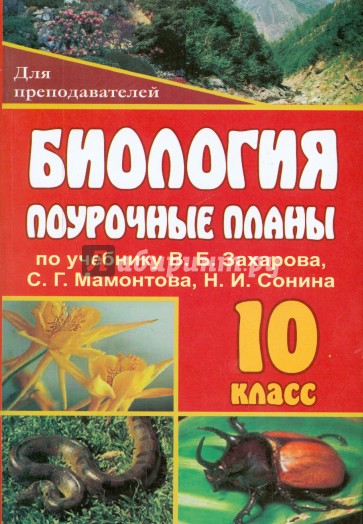 Данное пособие предлагает поурочное планирование, составленное в соответствии с учебником: Захаров В. Б., Мамонтов С. Г., Сонин Н. И., Захарова Е. Т. Биология. Общая биология. Профильный уровень. 10 кл.: учеб. для общеобразоват. учреждений. М.: Дрофа, 2011.