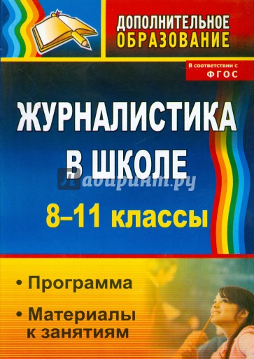 В пособии представлены программа дополнительного образования "Журналистика в школе", рекомендации по ее применению, подробное учебно-тематическое планирование, теоретические и практические материалы к занятиям, которые позволят педагогам организовать внеурочную деятельность школьников 8-11 классов с учетом ФГОС, обеспечить формирование ценностного отношения к социальной реальности и получение опыта самостоятельного общественного действия через привлечение учащихся к работе в школьном пресс-центре и к выпуску школьных печатных изданий.