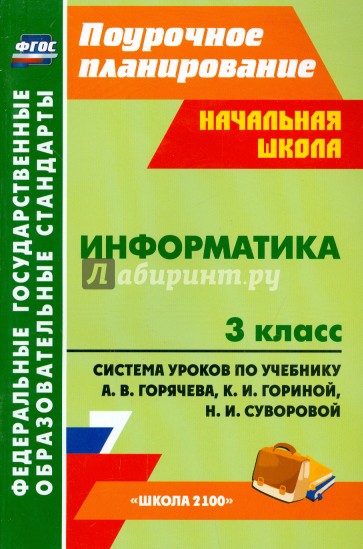 В пособии представлены сценарии уроков по информатике для 3 класса, ориентированные на работу по учебнику А. В. Горячева, К. И. Гориной, Н. И. Суворовой (М.: Баласс: Школьный дом, 2012).