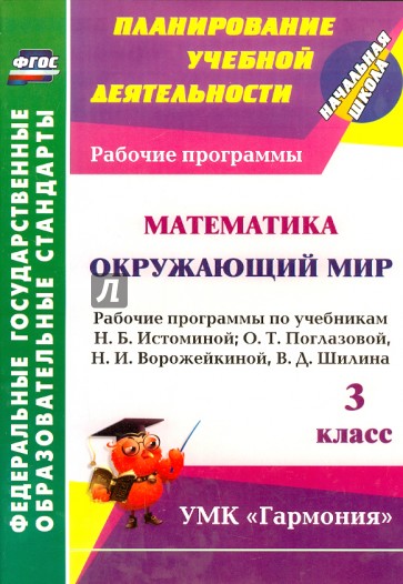 В пособии представлены рабочие программы по математике и окружающему миру для 3 класса, разработанные в соответствии с основными положениями федерального государственного образовательного стандарта, Концепцией духовно-нравственного развития и воспитания личности гражданина России, планируемыми результатами начального общего образования и требованиями Примерной образовательной программы, ориентированные на работу по учебникам "Математика" Н. Б. Истоминой и "Окружающий мир" О. Т. Поглазовой, Н. И. Ворожейкиной, В. Д. Шилина (Смоленск: Ассоциация XXI век, 2013), входящим в УМК "Гармония".