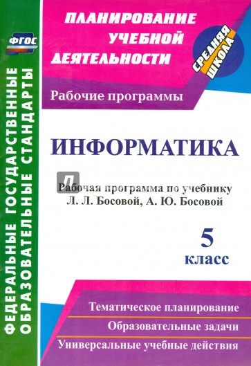 В пособии представлена рабочая программа по информатике для 5 класса, разработанная в соответствии с основными положениями федерального государственного образовательного стандарта основного общего образования, планируемыми результатами, требованиями Примерной основной образовательной программы ОУ и авторской программы Л. Л. Босовой, А. Ю. Босовой, ориентированная для работы по учебнику Л. Л. Босовой, А. Ю. Босовой (М.: БИНОМ. Лаборатория знаний, 2013).
