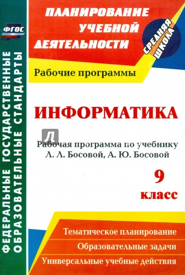 В пособии представлена рабочая программа по информатике для 9 класса, разработанная в соответствии с основными положениями федерального государственного образовательного стандарта основного общего образования, планируемыми результатами, требованиями Примерной основной образовательной программы ОУ и авторской программы Л. Л. Босовой, А. Ю. Босовой, ориентированная для работы по учебнику Л. Л. Босовой, А. Ю. Босовой (М.: БИНОМ. Лаборатория знаний, 2013).