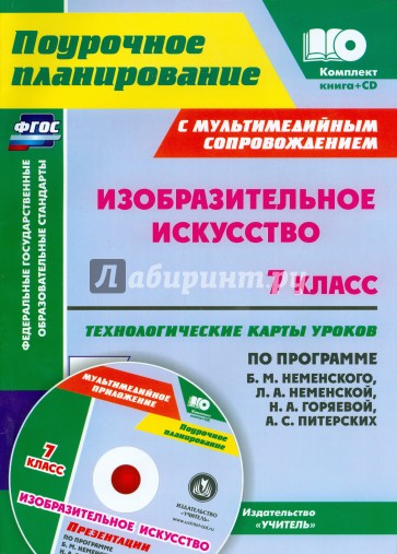 Предлагается комплект, состоящий из пособия с технологическими картами уроков изобразительного искусства в 7 классе и электронного приложения с презентациями, разработанный в соответствии с ФГОС ООО, ориентированный на работу по программе Б. М. Неменского, Л. А. Неменской, Н. А. Горяевой, А. С. Питерских (М.: Просвещение, 2014).