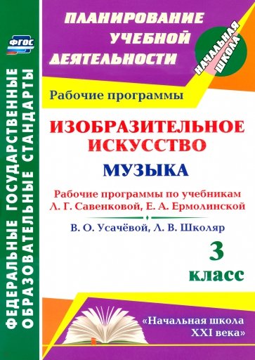 В пособии представлены рабочие программы по изобразительному искусству и музыке для 3 класса, разработанные в соответствии с основными положениями федерального государственного образовательного стандарта, планируемыми результатами начального общего образования и требованиями Примерной образовательной программы, ориентированные на работу по учебникам Л. Г. Савенковой, Е. А. Ермолинской "Изобразительное искусство" и В. О. Усачёвой, Л. В. Школяр "Музыка" (М.: Вентана-Граф, 2014), входящим в УМК "Начальная школа XXI века".