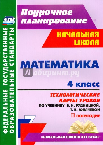 Пособие содержит технологические карты уроков математики в 4 классе, составленные по учебнику В. Н. Рудницкой, Т. В. Юдачевой (М.: Вентана-Граф, 2014), входящему в УМК "Начальная школа XXI века".
