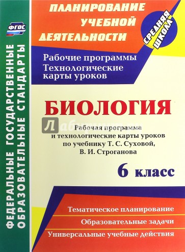 В пособии представлены рабочая программа и технологические карты уроков по биологии для 6 класса, разработанные в соответствии с основными положениями ФГОС ООО и ориентированные на работу по учебнику Т. С. Суховой, В. И. Строганова (М.: Вентана-Граф, 2015).
