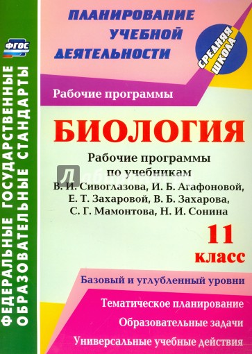 Биология. 11 класс. рабочие программы по учебникам В. И. Сивоглазова, И. Б. Агафоновой, Е. Т. Захаровой, В. Б. Захарова, С. Г. Мамонтова, Н. И. Сонина. Базовый и углубленный уровни: тематическое планирование, образовательные задачи, универсальные учебные действия.