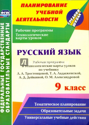 В пособии представлены рабочая программа и технологические карты уроков по русскому языку для 9 класса, разработанные в соответствии с основными положениями ФГОС ООО и ориентированные на работу по учебнику Л. А. Тростенцовой, Т. А. Ладыженской, А. Д. Дейкиной, О. М. Александровой (М.: Просвещение, 2016).