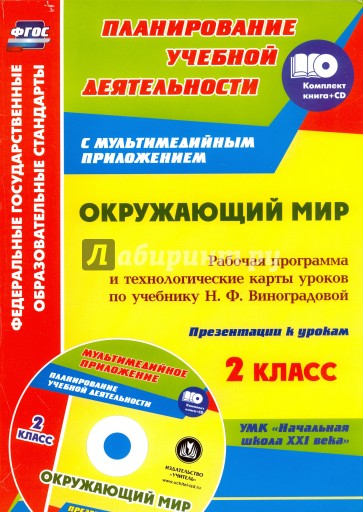 Предлагается комплект (книга + диск), состоящий из пособия с рабочей программой и технологическими картами уроков окружающего мира во 2 классе и мультимедийного приложения с презентациями, разработанный в соответствии с положениями ФГОС НОО, ориентированный на работу по учебнику Н. Ф. Виноградовой, входящему в УМК "Начальная школа XXI века".