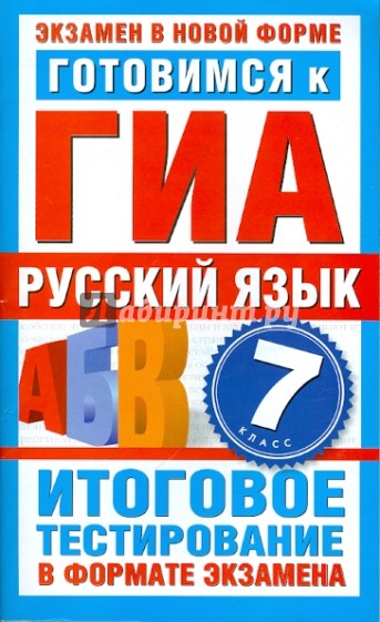 Пособие содержит комплекты тестовых заданий для осуществления итогового контроля знаний по русскому языку в 7 классе в форме государственной итоговой аттестации.