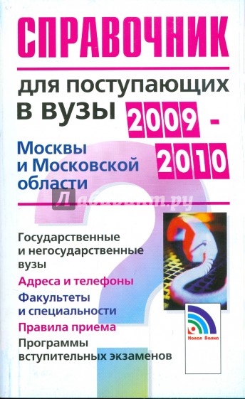 Справочник для поступающих в Вузы Москвы и Московской Области 2009-2010 г.Составитель О.А.Гаврилова.