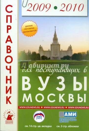 В 2009 году прием в вузы организуется по новым правилам. Поэтому особую ценность имеют содержащиеся в справочнике официальные документы: новый Порядок приема в вузы; перечень вступительных испытаний при поступлении на разные специальности; перечень вузов и специальностей, при поступлении на которых проводятся дополнительные испытания профильной направленности. Дается также информация о едином государственном экзамене. Традиционно в справочнике приводятся адреса и телефоны всех государственных вузов Москвы, даются подробные сведения о каждом из них: факультеты, специальности, экзамены, конкурс, подготовительные курсы, особенности приема. Широко представлены негосударственные вузы столицы. Имеются материалы о втором высшем и дополнительном образовании, довузовской подготовке и профориентации. Все сведения получены в ректоратах и приемных комиссиях вузов, на факультетах довузовской подготовки, в Министерстве образования и науки Российской Федерации.