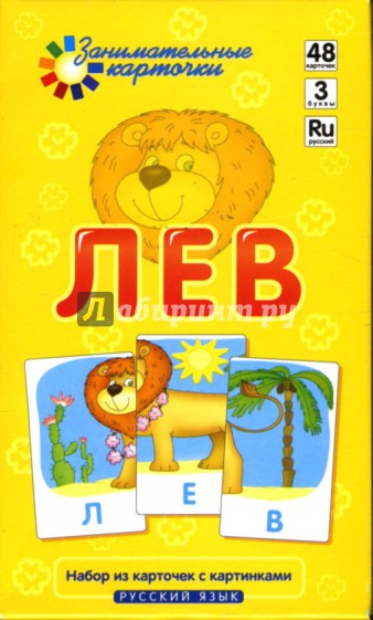 В набор входят 48 карточек, из которых можно составить 16 картинок. Если правильно подобрать картинку, получаются слова, состоящие из трех букв.