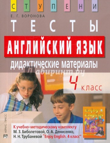 В пособии представлены тесты к учебно-методическому комплекту "Английский с удовольствием" ("Enjoy English") для 4 класса общеобразовательных школ (М.З. Биболетова, О.А.Денисенко, Н.Н. Трубанева. - Обнинск: Титул).