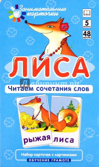 Набор карточек с картинками из серии "Занимательные карточки" входит в состав комплекта по обучению ребенка грамоте. Общее количество карточек в комплекте обеспечивает становление у ребёнка полноценной техники первоначального чтения. Играя с карточками - составляя слова, ребёнок учится читать, запоминает графический образ слова. В данный набор входят 48 карточек, из которых можно составить 24 картинки. Если правильно собрать картинку, получится сочетание слов. В игре используется как лицевая сторона карточки, так и оборотная, что позволяет повысить эффективность обучения чтению. Пособие предназначено для занятий с детьми дошкольного и младшего школьного возраста. Используется на пятом этапе обучения - чтение словосочетаний.