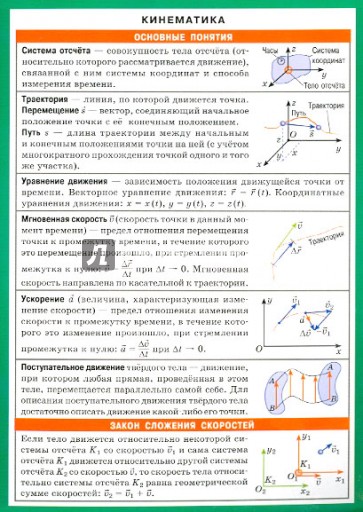Наглядное пособие поможет закрепить и частично расширить сведения, полученные школьниками на уроках физики по теме "Кинематика". Пособие отличают удобный формат и ёмкость изложения. Сжатые теоретические сведения, основные формулы для различных видов механического движения, рисунки и схемы помогут школьникам быстро сориентироваться в материале, проанализировать и выбрать верное решение задачи. Пособие будет полезно учащимся при подготовке к контрольным, самостоятельным работам и подготовке к ЕГЭ.