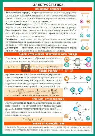 Наглядное пособие поможет закрепить и частично расширить сведения, полученные школьниками на уроках физики по теме "Электростатика". Пособие отличают удобный формат и ёмкость изложения. Сжатые теоретические сведения по основным законам и принципам электростатики, соответствующие формулы, рисунки и схемы, помогут школьникам быстро сориентироваться в материале, проанализировать и выбрать верное решение задачи. Пособие будет полезно учащимся при подготовке к контрольным, самостоятельным работам и подготовке к ЕГЭ.