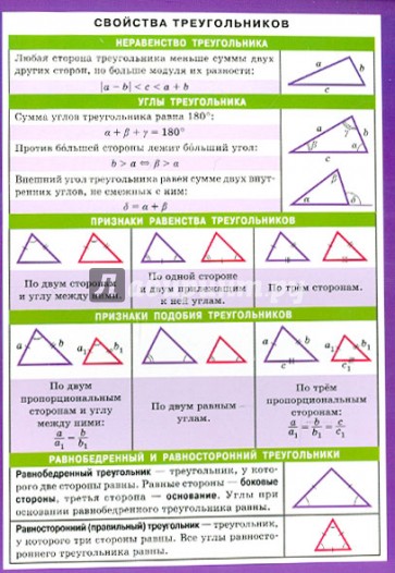 Основная задача наглядного пособия "Свойства треугольников" - закрепить и частично расширить сведения, полученные школьниками на уроках геометрии. Сжатые теоретические сведения, ключевые формулы, графики помогут школьникам быстро сориентироваться в материале, проанализировать и выбрать верное решение. Наглядное пособие будет полезно учащимся при подготовке к контрольным, самостоятельным работам и подготовке к ЕГЭ.