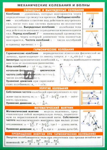 Наглядное пособие поможет закрепить и частично расширить сведения, полученные школьниками на уроках физики по теме "Механические колебания и волны". Пособие отличают удобный формат и ёмкость изложения. Сжатые теоретические сведения по основным видам механических колебаний, необходимые определения и формулы, рисунки и схемы, помогут школьникам быстро сориентироваться в материале, проанализировать и выбрать верное решение задачи. Пособие будет полезно учащимся при подготовке к контрольным, самостоятельным работам и подготовке к ЕГЭ.