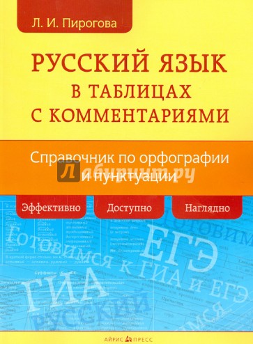 Пособие содержит материал по основным и самым трудным разделам современного русского языка - орфографии и пунктуации. Особенностью данного справочника является подача правил в виде таблиц. Каждая таблица представлена на одной странице, что позволяет при любом уровне подготовленности быстро и целиком усвоить тему. В конце книги даны комментарии, в которых автор разъясняет наиболее трудные правила и предлагает простые способы их запоминания. Издание адресовано широкому кругу читателей: школьникам, особенно для эффективной подготовки к ГИА и ЕГЭ, абитуриентам, студентам, учителям и всем, кто интересуется русским языком.