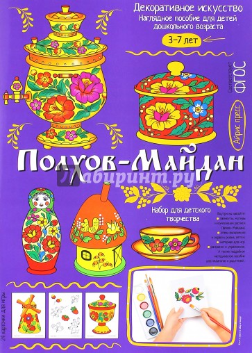 Комплект с демонстрационно-игровым материалом посвящён росписи Полхов-Майдана, её характерным особенностям и традициям. Комплект можно разрезать на отдельные карточки и использовать как наглядно-демонстрационное пособие или как игровой материал. К комплекту прилагается методическое пособие для педагогов и родителей. Оно позволит более детально познакомиться с мотивами и элементами росписи, чтобы в дальнейшем эффективно организовать работу детей с комплектом. Также в пособии предлагаются примеры игр на основе материала комплекта.