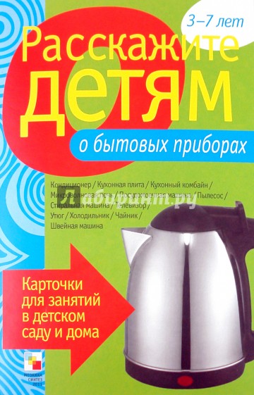 Пособие с яркими четкими картинками поможет Вам рассказать малышам о бытовых приборах. Они узнают много нового и интересного о кондиционерах, чайниках, телевизорах, пылесосах, микроволновых печах и о многих других. На оборотной стороне карточек содержатся необходимые сведения о них. Эта информация поможет сделать ваш рассказ увлекательным и познавательным для каждого малыша.