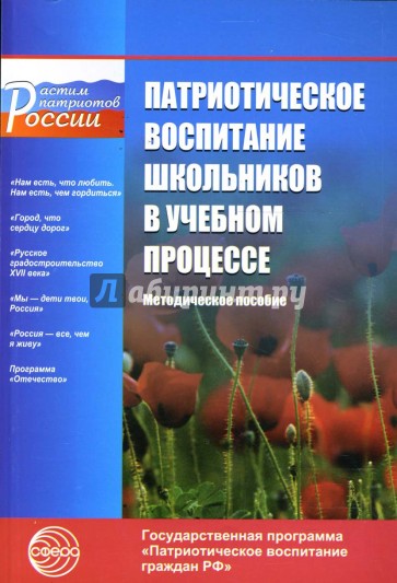 В пособии дано обоснование понятию "патриотическое воспитание", раскрыто научно-педагогическое содержание деятельности образовательных учреждений системы общего образования школьников в учебном процессе. Методика патриотического воспитания представлена через раскрытие передового опыта педагогов-практиков по патриотически воспитывающему обучению учащихся на уроках литературы, истории и обществознания и других учебных дисциплин, на дополнительных учебных занятиях, материалах спецкурсов, государственной символике и народных традициях, через опыт развития культуры межнациональных отношений у школьников.