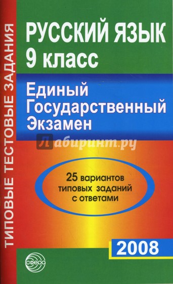 Предлагаемый сборник содержит 25 типовых вариантов тестовых заданий ЕГЭ по русскому языку для 9 класса.