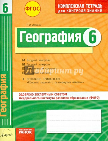 В пособии представлены проверочные работы по географии для проведения входного, текущего, тематического и итогового контроля уровня знаний учеников 6 классов в форме тестовых заданий, аналогичных заданиям ГИА и ЕГЭ, что позволит постепенно подготовить учеников к итоговой аттестации в 9 классе. Содержание пособия соответствует требованиям ФГОС основного общего образования по географии. Вопросы и задания по всем темам курса составлены в объёме, соответствующем обязательному минимуму географического образования.