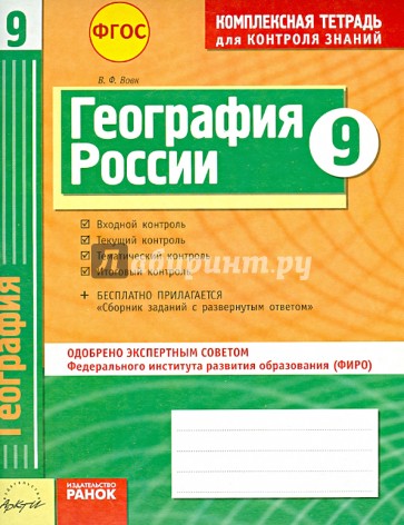 В пособии представлены проверочные работы по географии для проведения входного, текущего, тематического и итогового контроля уровня знаний учеников 9 класса в форме тестовых заданий, аналогичных заданиям ГИА и ЕГЭ, что позволит постепенно подготовить учеников к итоговой аттестации в 9 классе. Содержание пособия соответствует требованиям ФГОС основного общего образования по географии. Вопросы и задания по все темам курса составлены в объёме, соответствующем обязательному минимуму географического образования.