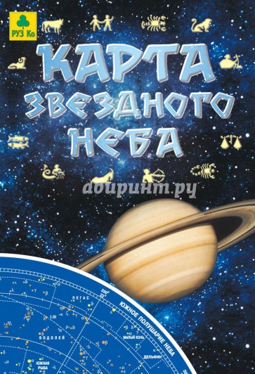 Карта звёздного неба, двусторонняя, полноцветная, складная.