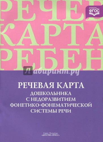 Вашему вниманию предлагается индивидуальная "Речевая карта дошкольника с недоразвитием фонетико-фонематической системы речи".