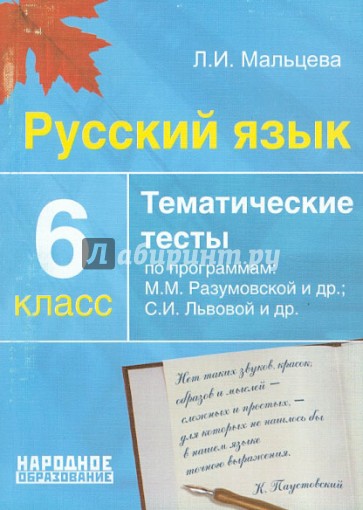 Данное пособие, составленное в соответствии с требованиями программы по русскому языку, авторами которой являются М.М. Разумовская и др., и программы С.И. Львовой, состоит из трёх разделов. В первом разделе содержатся тематические тесты, во втором - тематические тесты, связанные с лингвистическим анализом текста, в третьем - итоговые тесты. Задания, включённые в тематические тесты, содержащиеся во второй и третьей частях книги, аналогичны тем, которые использовались при проведении итоговой аттестации и ЕГЭ в предшествующие годы. Поэтому данное пособие не только поможет учащимся закрепить знания, полученные на уроках русского языка, но и послужит первым шагом на длинном пути подготовки к итоговой аттестации за курс основной школы и ЕГЭ.