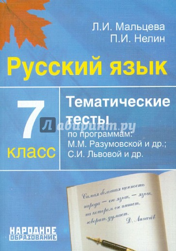 Данное пособие, составленное в соответствии с требованиями программы по русскому языку, авторами которой являются М.М. Разумовская и др., и программы С.И. Львовой, состоит из трёх разделов. В первом разделе содержатся тематические тесты, во втором - тематические тесты, связанные с лингвистическим анализом текста, в третьем - итоговые тесты. Задания, включённые в тематические тесты, содержащиеся во второй и третьей частях книги, аналогичны тем, которые использовались при проведении итоговой аттестации и ЕГЭ в предшествующие годы. Поэтому данное пособие не только поможет учащимся закрепить знания, полученные на уроках русского языка, но и послужит первым шагом на длинном пути подготовки к итоговой аттестации за курс основной школы и ЕГЭ.