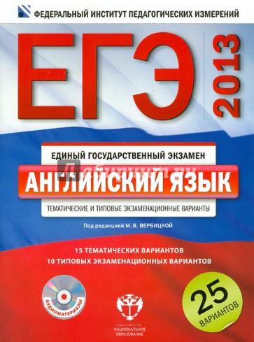 Серия "ЕГЭ-2013. ФИПИ - школе" подготовлена разработчиками контрольных измерительных материалов. В сборнике представлены: · 10 обновленных типовых экзаменационных вариантов для подготовки к экзамену 2013 года; · инструкция по выполнению экзаменационной работы и типовые бланки ответов ЕГЭ; · аудиодиск с записью инструкций и текстов к разделу "Аудирование" ко всем вариантам; · ответы к заданиям экзаменационной работы; · критерии оценивания. Выполнение заданий типовых экзаменационных вариантов предоставляет учащимся возможность самостоятельно подготовиться к итоговой аттестации, а также объективно оценить уровень своей подготовки. Учителя могут использовать типовые экзаменационные варианты для организации контроля результатов обучения школьников и интенсивной подготовки учащихся к ЕГЭ.