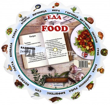Пособие состоит из трех картонных кругов, соединенных в центре, что позволяет им вращаться вокруг своей оси. На центральном круге представлены 16 изображений и их названия на русском языке. Сопоставляя вырез на внешнем круге с изображением, можно прочитать его название на английском. То же самое - на второй стороне круга. Каждое пособие позволяет выучить и запомнить 32 слова.