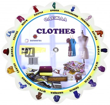 На центральном круге представлены 16 изображений и их названия на русском языке. Сопоставляя вырез на внешнем круге с изображением, можно прочитать его название на английском. То же самое - на второй стороне круга. Каждое пособие позволяет выучить и запомнить 32 слова.