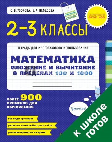 Тетрадь "Математика. 2-3 класс. Сложение и вычитание в пределах 100 и 1000" охватывает большую часть видов примеров на сложение и вычитание, которые вашему ребёнку предстоит изучить в первый год обучения в школе. Темы "Сотня" и "Тысяча" - одни из самых главных базовых тем в 1-4 классах. Важно не только научиться решать примеры без ошибок, но и решать их за определённое время. Можно сказать, что ребёнок научился считать, только если навык счёта доведён до автоматизма.