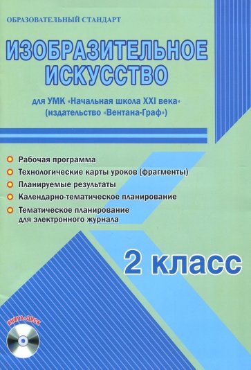 Изобразительное искусство. 2 класс. Для УМК «Начальная школа XXI века» (издательство «Вентана-Граф»). Рабочая программа. Технологические карты уроков (фрагменты). Планируемые результаты. Календарно-тематическое планирование. Тематическое планирование для электронного журнала. Методическое пособие с электронным приложением КНИГА+ДИСК/ Авт.-сост. Е.С. Галанжина. – 40 с.