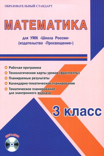 В методическом пособии представлена рабочая программа по математике, предназначенная для обучения учащихся 3-го класса общеобразовательной четырехлетней начальной школы. Программа разработана и составлена с учетом Федерального государственного образовательного стандарта второго поколения для УМК "Школа России" (издательство "Просвещение"). Структура программы соответствует требованиям Министерства образования и науки и Рособрнадзора и включает в себя краткую пояснительную записку, учебно-тематическое планирование, содержание программы, планируемые личностные, метапредметные и предметные результаты, календарно-тематическое планирование (с характеристикой деятельности ученика на каждом уроке). Также в книге даны фрагменты технологических карт всех уроков с планируемыми результатами освоения программы. Методическое пособие дополнено электронным приложением (CD-диском), на котором представлены календарно-тематическое планирование и фрагменты технологических карт уроков в текстовом формате. Учитель может скачать эти файлы и использовать их как шаблон для написания календарно-тематического планирования и технологических карт уроков для своего класса. Книга предназначена для учителей начальных классов, заместителей директоров по содержанию образования, методистов, педагогов-организаторов учебной работы, студентов педагогических колледжей и вузов, магистрантов, слушателей курсов повышения квалификации.