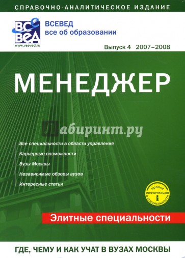 В издании представлена информация о специальностях, по которым присваивается квалификация "менеджер", о московских вузах, в которых можно получить эти специальности, об особенностях образовательных программ, а также о многом другом.