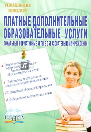 В книге поэтапно рассматривается весь путь создания локальной нормативной базы по организации платных дополнительных образовательных услуг, в приложении к книге содержится ряд документов Федерального законодательства и пакет примерных локальных нормативных актов по ПДО услугам в образовательном учреждении.